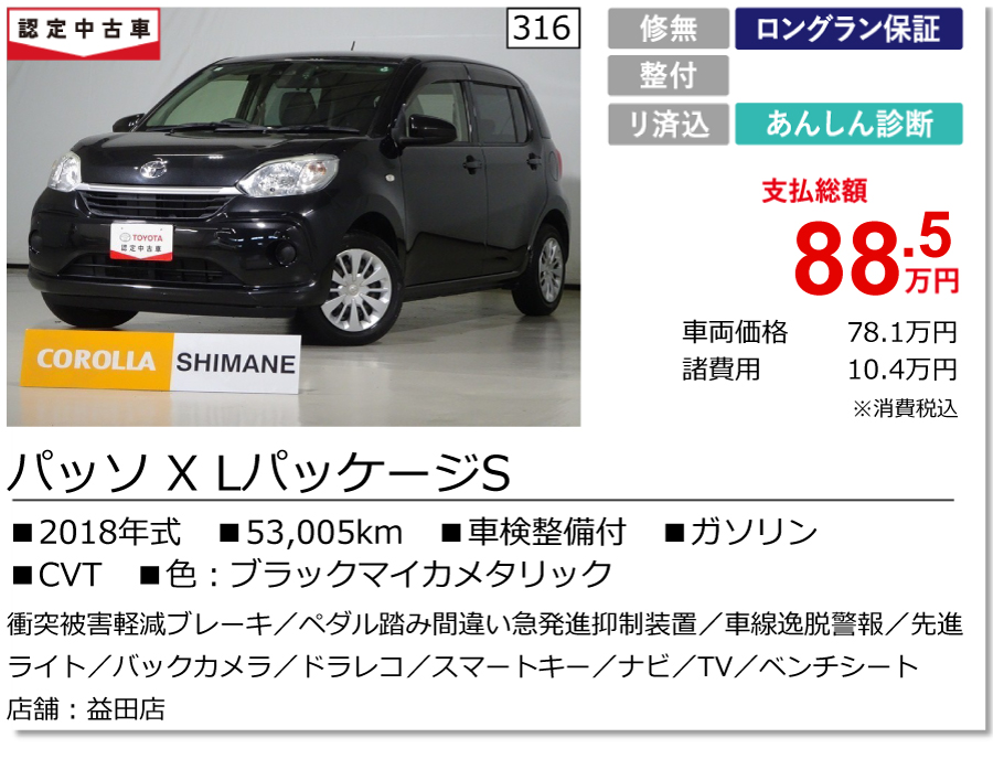 トヨタカローラ島根では 「グーネット」 「GAZOO中古車」 で中古車を掲載しております。 中古車情報は下記のサイトからご確認ください。